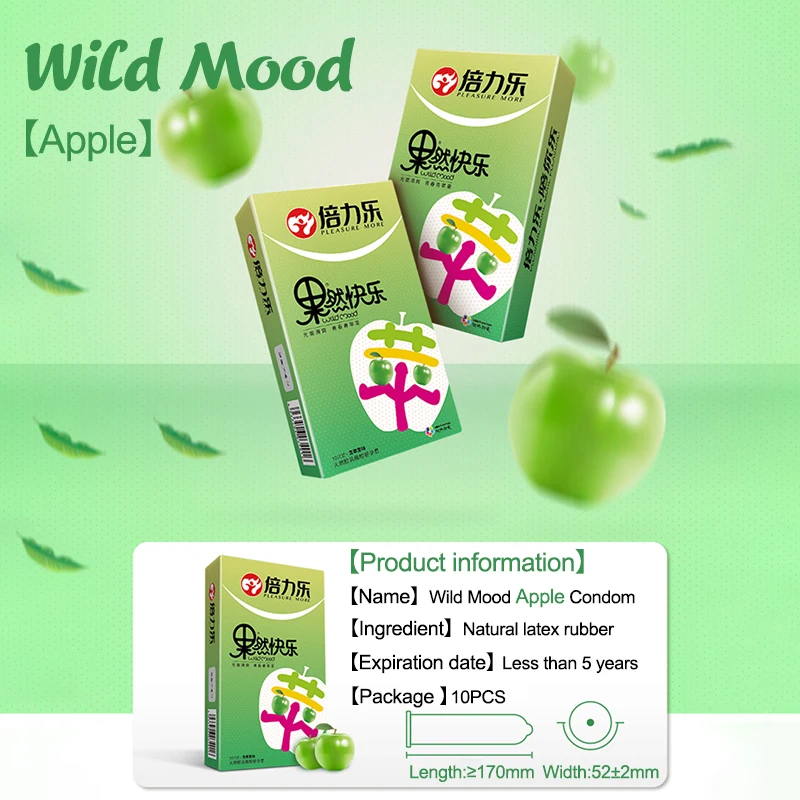 Material: Natural latex Feature: 6 Flavors (Peach/Apple/Orange/Blueberry/Strawberry/Banana) Quantity: 10 PCs Nominal length: More than 170 mm Nominal width: W 52+-2 mm Package: Discreet package and safe text on parcel
