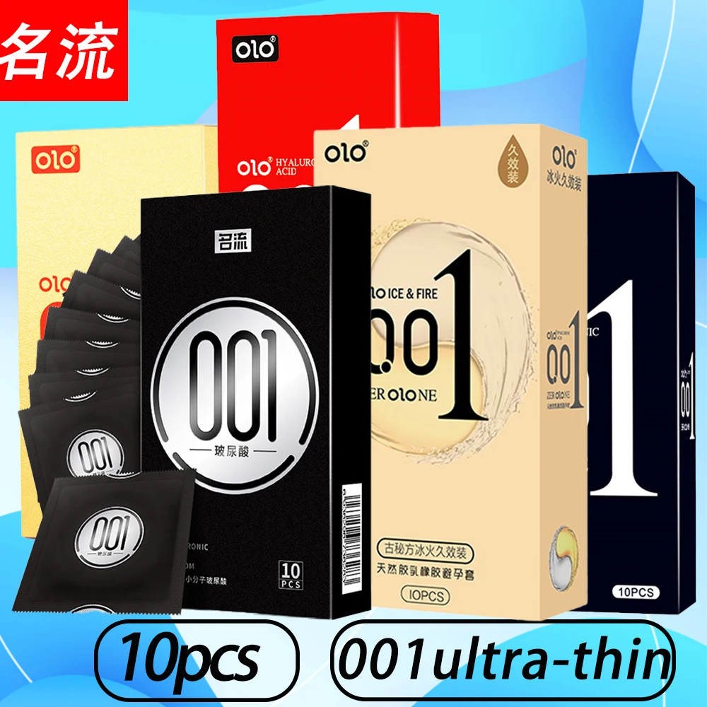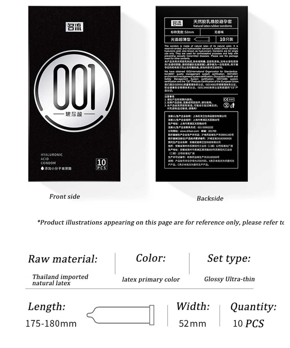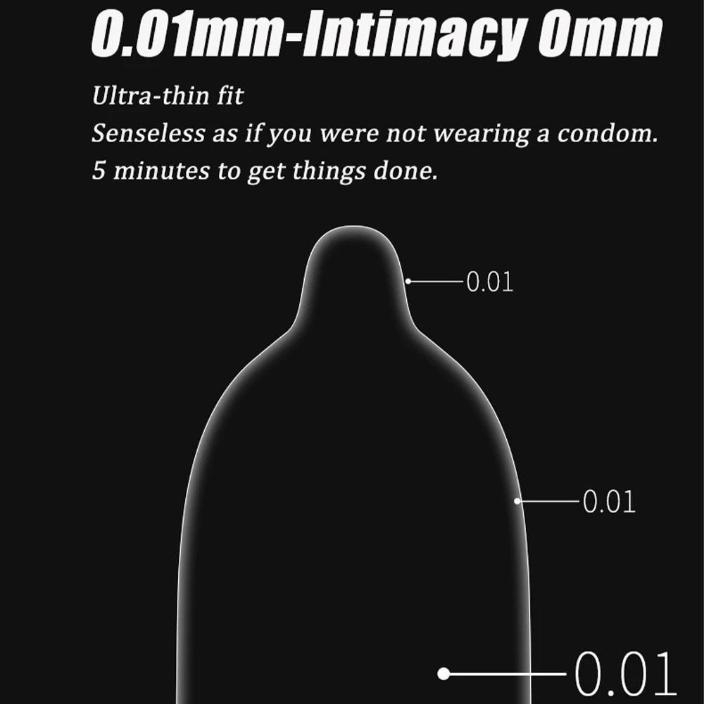 Préservatif à l'acide hyaluronique Ultra-mince Type lisse 52mm mâle 0.01 préservatif nu mince léger ajustement manchon de pénis 10 pièces produits de sexe plus sûrs