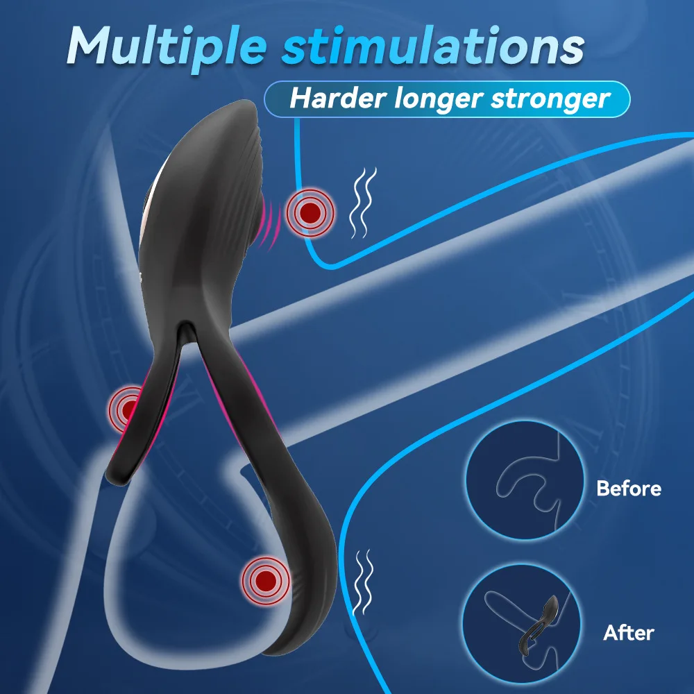 Anneau de pénis à double anneau télécommandé sans fil, éjaculation retardée, agrandissement, érection, vibration à double point, jouet sexuel masculin