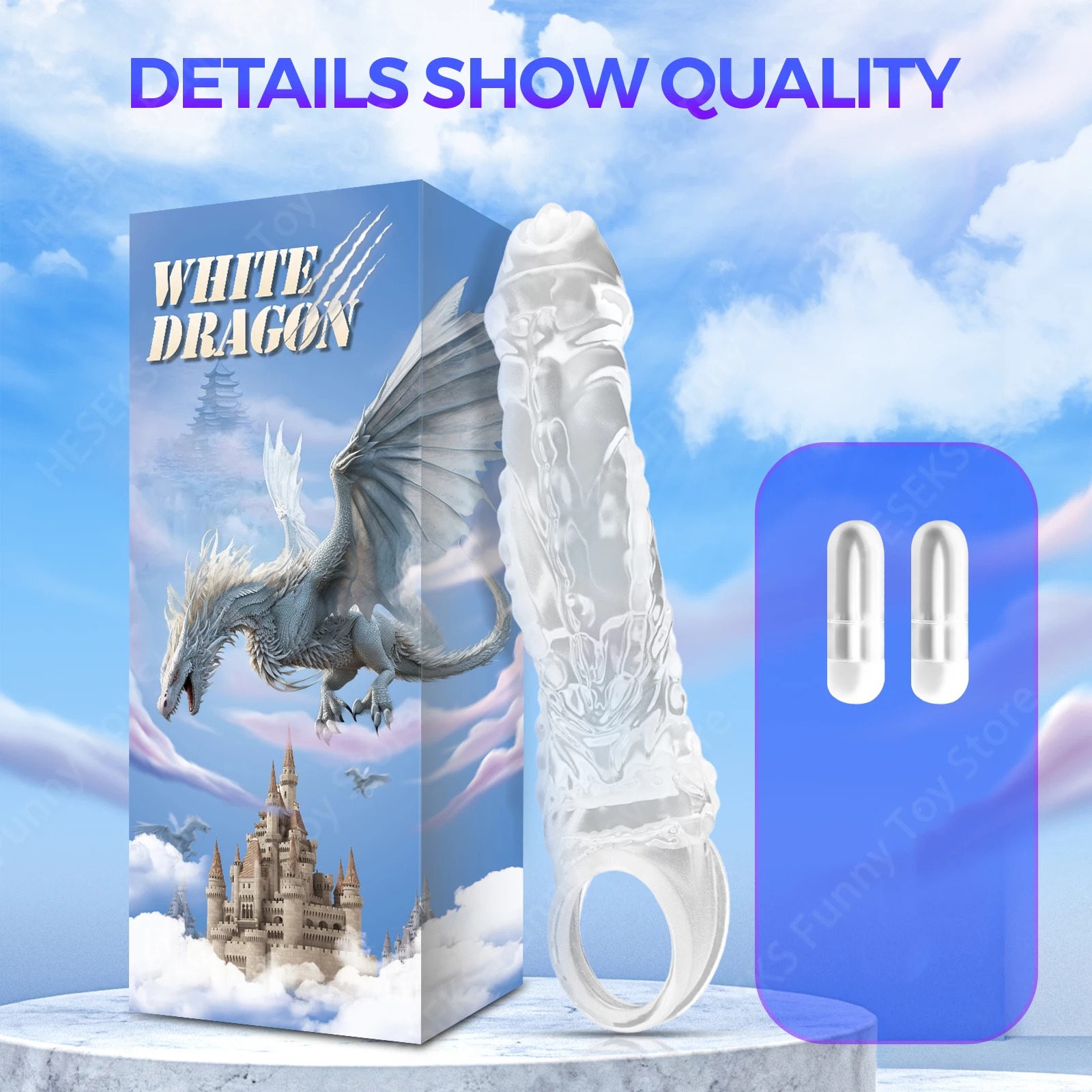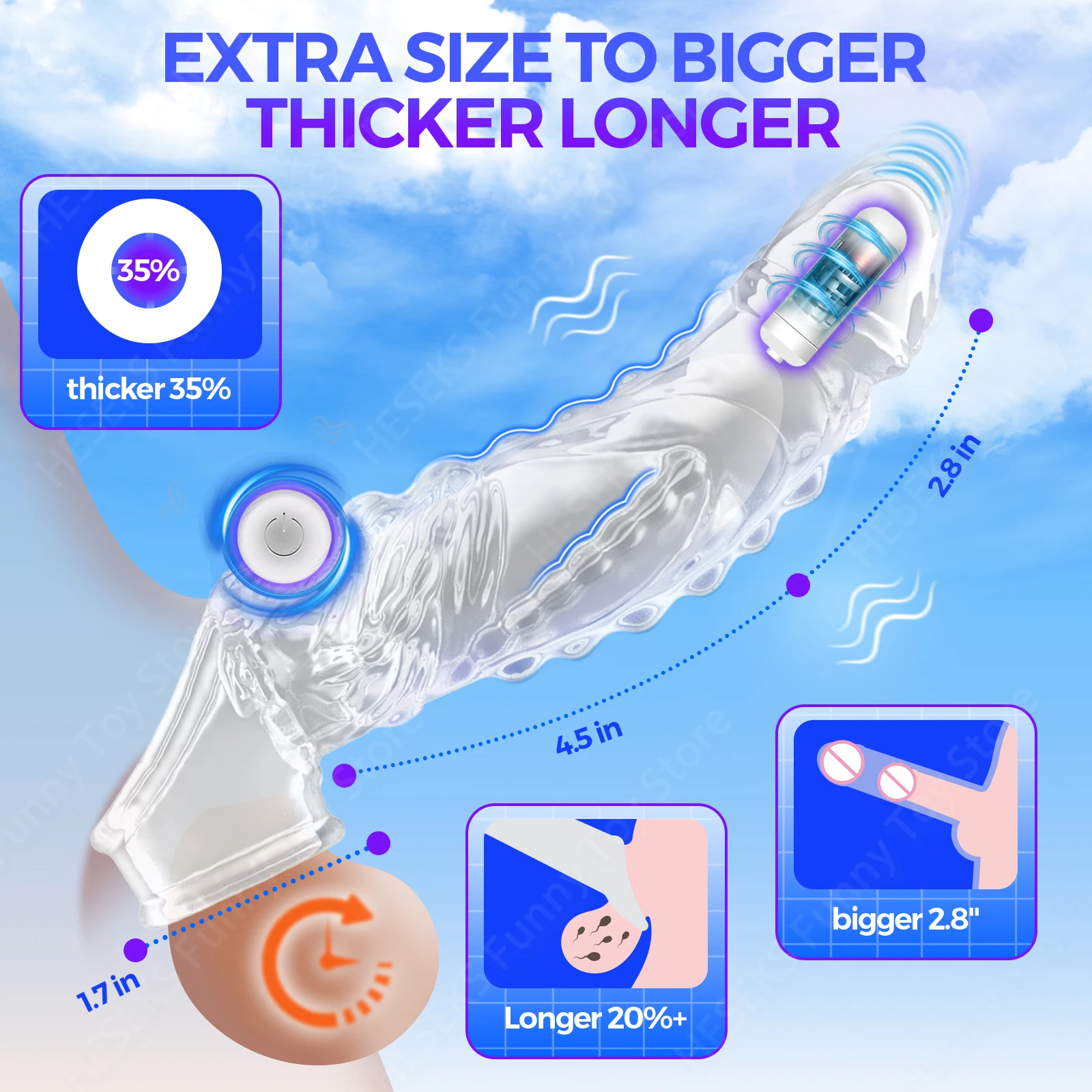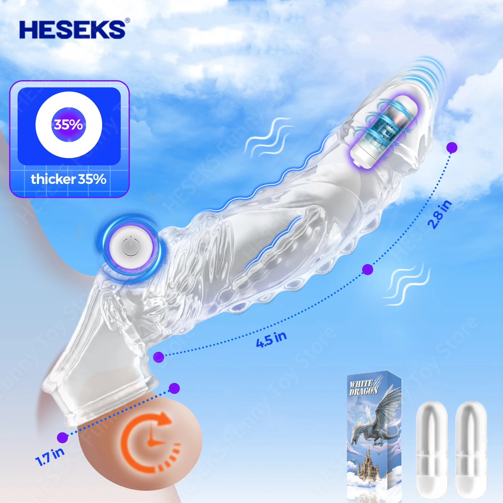 HESEKS Extensions de manchon de pénis préservatif mâle agrandissement retard vibrateurs anneau de coq vibrant pénis Extender couverture jouets sexuels pour hommes