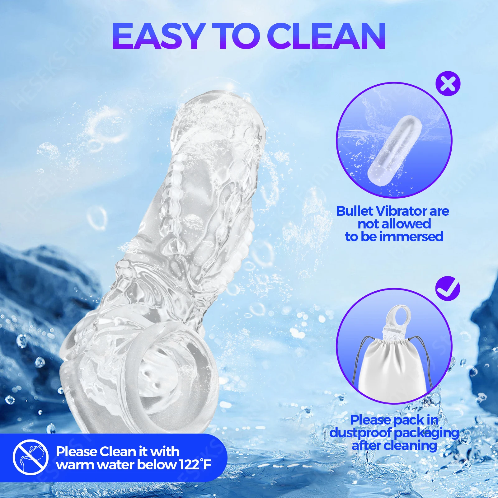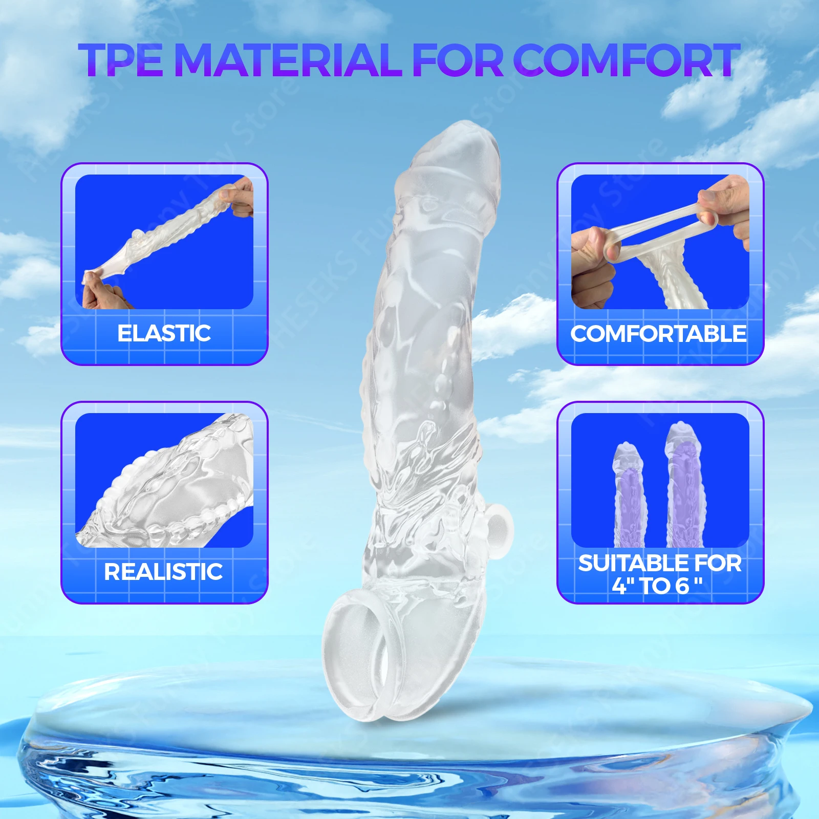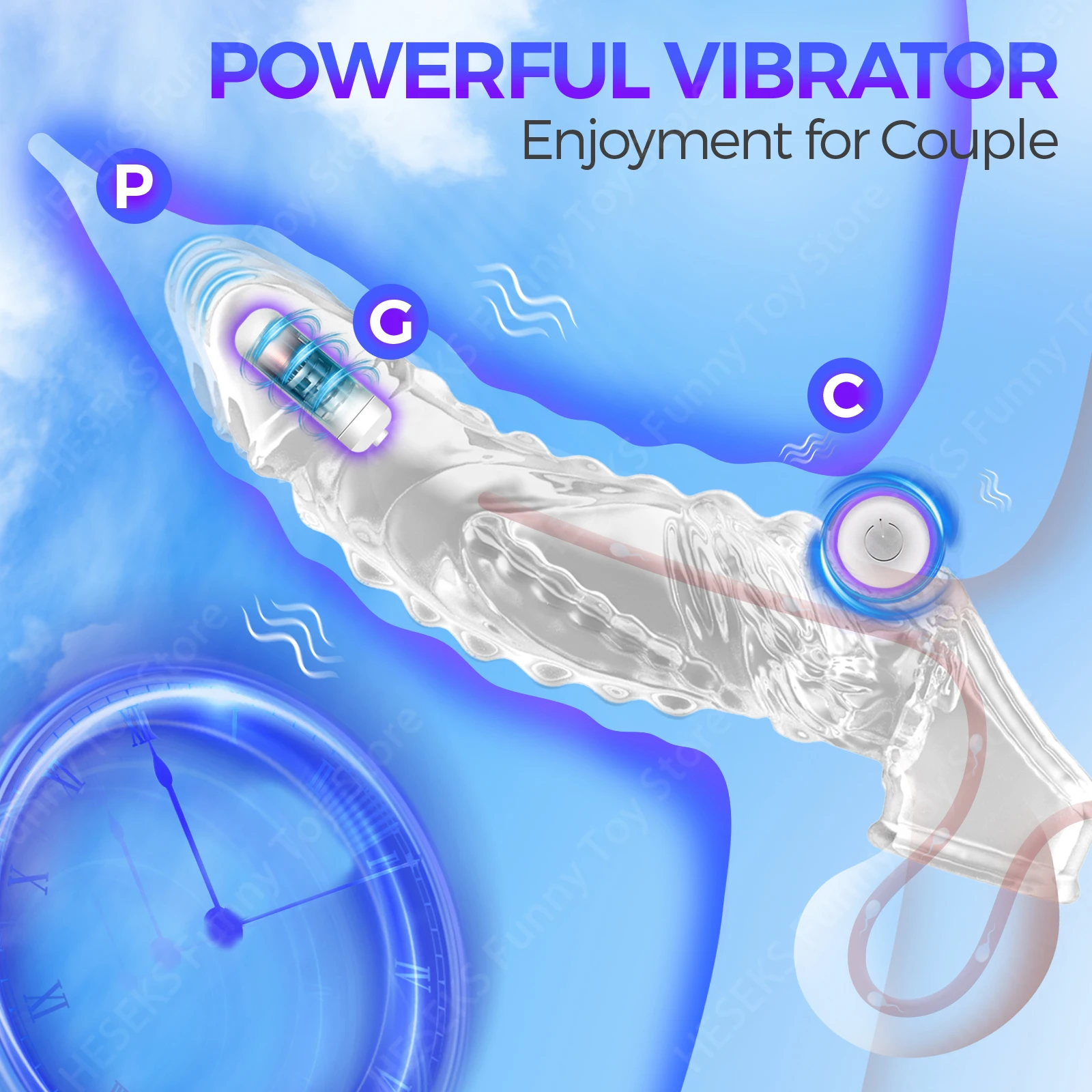 HESEKS Extensions de manchon de pénis préservatif mâle agrandissement retard vibrateurs anneau de coq vibrant pénis Extender couverture jouets sexuels pour hommes