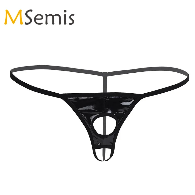 MSemis-Culotte en cuir verni pour hommes, sous-vêtements en string, string à bout ouvert, culotte gay pour hommes avec trous pour pénis, nouvelle lingerie sexy, également