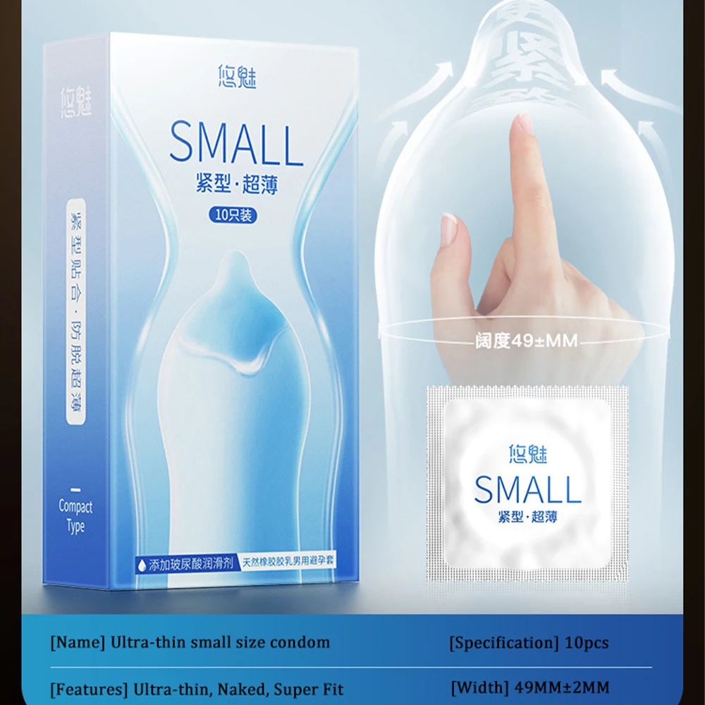 Préservatif lisse en Latex Ultra fin, 10 pièces, 49mm, petite taille pour hommes, produits sexuels, préservatifs serrés et durables, jouets sexuels pour Couples, hommes et femmes