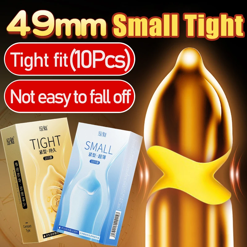 Préservatif lisse en Latex Ultra fin, 49mm, petite taille pour hommes, produits sexuels, préservatifs serrés et durables, jouets sexuels pour Couples, hommes et femmes, 10 pièces