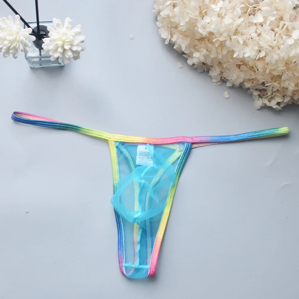 String en maille pour hommes, culotte sexy, taille basse, U, convexe, poudres, culotte transparente, lingerie, sous-vêtements