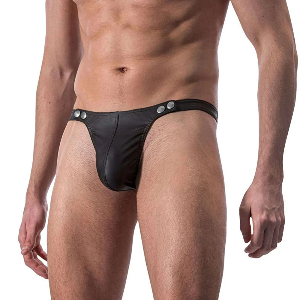 String sexy en cuir PU pour hommes, slip gay respirant, slip en T, bout ouvert pour le sexe, mini caleçon masculin taille basse